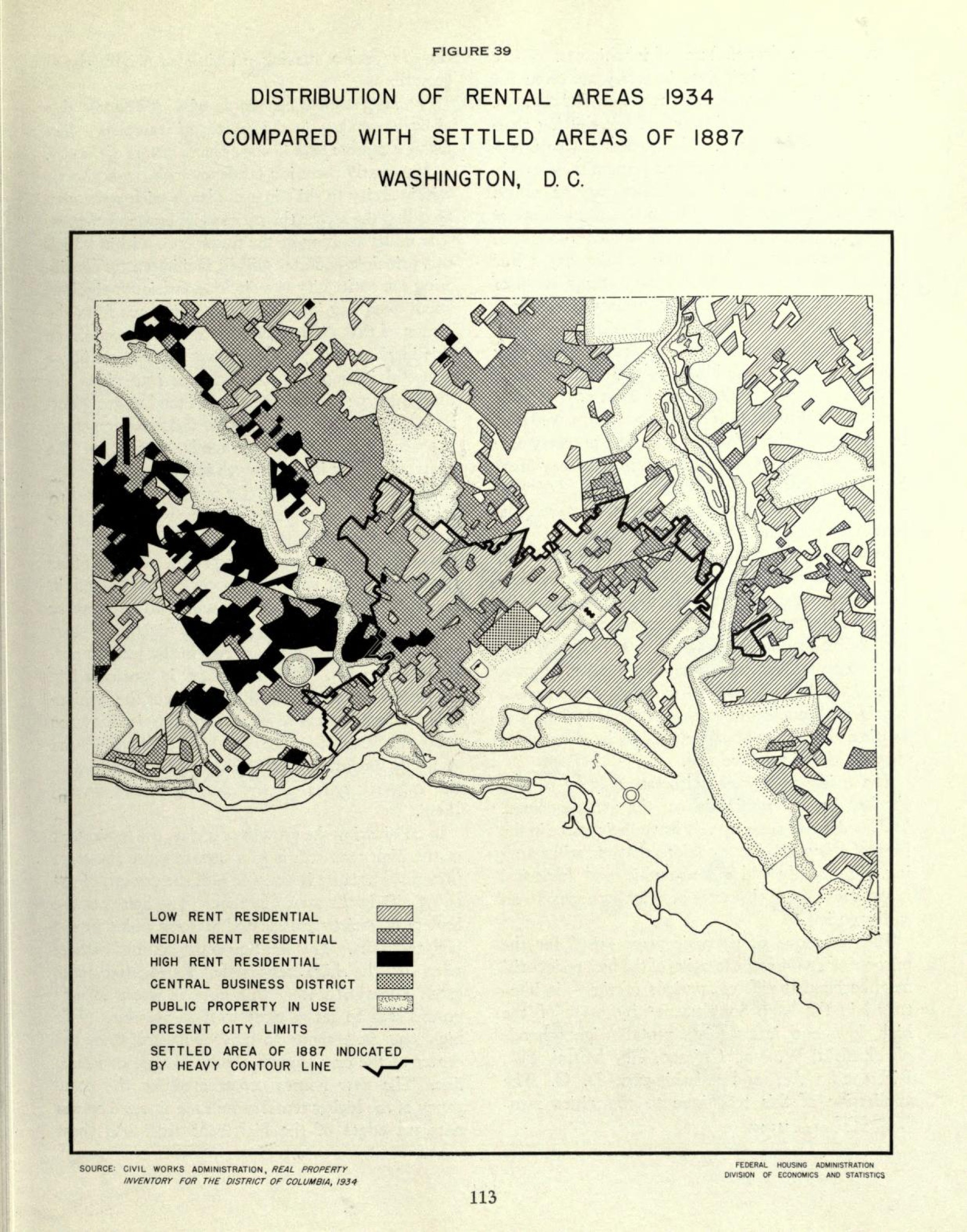 Rental Areas in 1934 Compared w/Settled Areas in 1887